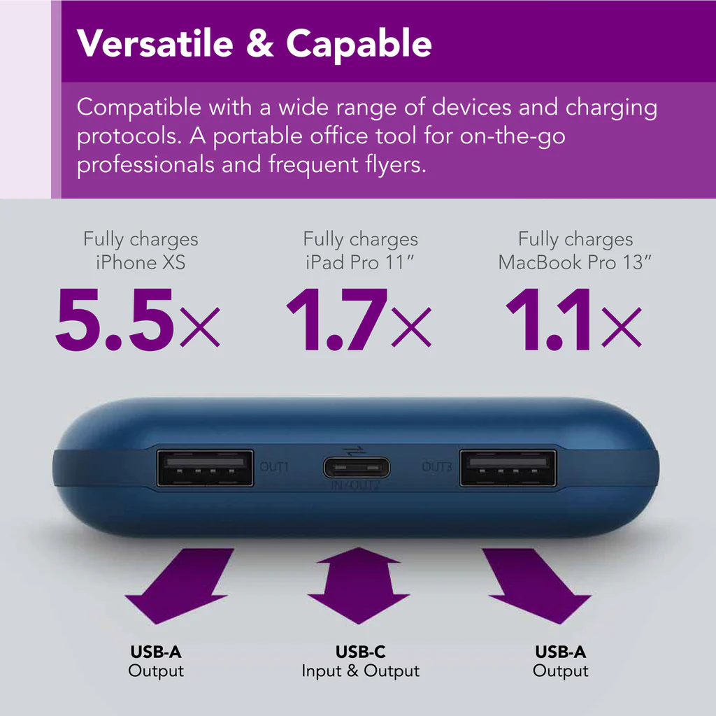 - Both USB-A ports (when used at the same time) deliver a combined 3A at 5V (15W total)